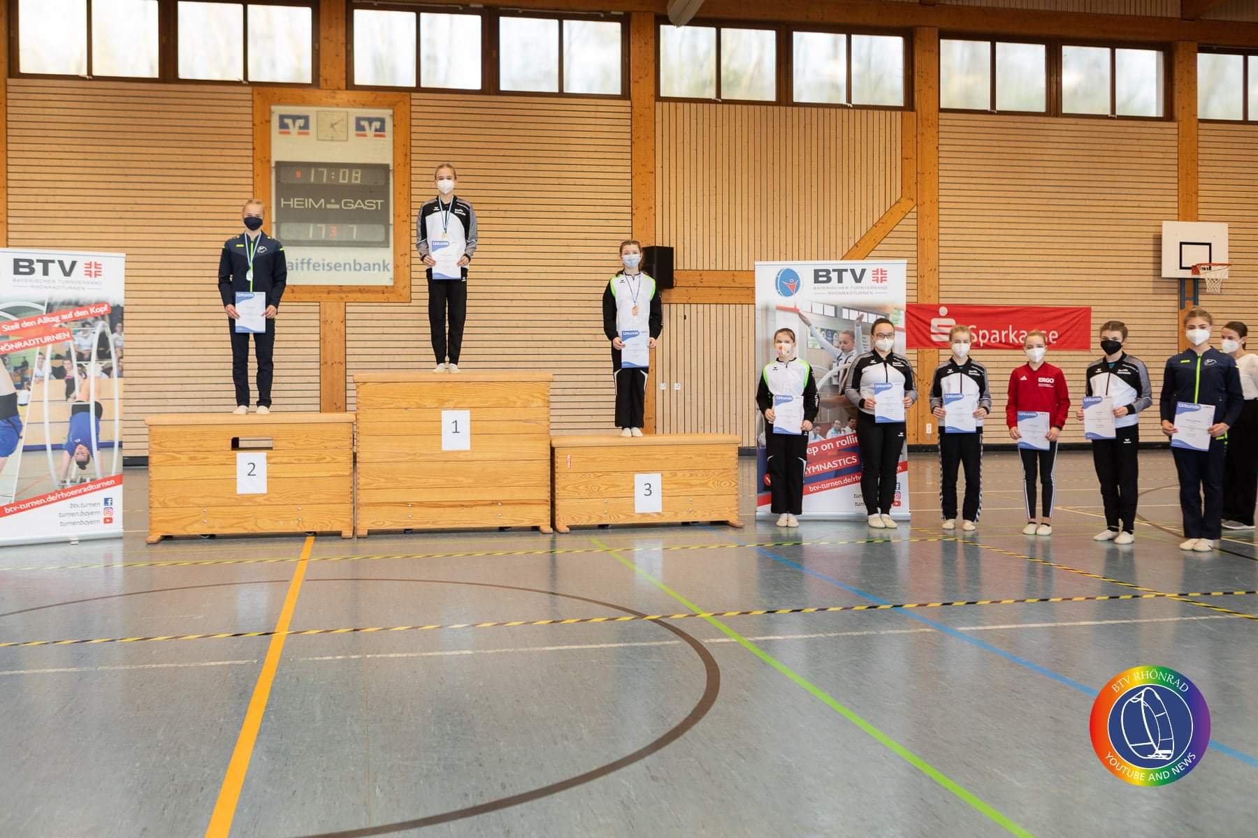 Bei den Kleinsten in der Altersklasse AKL10-12 gewann Maxima Negele vom TV Senden-Ay mit 6,85 Punkten, dahinter auf Platz 2 Pia-Luisa Renee Menz, ebenfalls vom TV Senden-Ay, mit 6,35 Punkten. Beide sicherten sich damit die Teilnahme an der Deutschland-Cup Qualifikation.