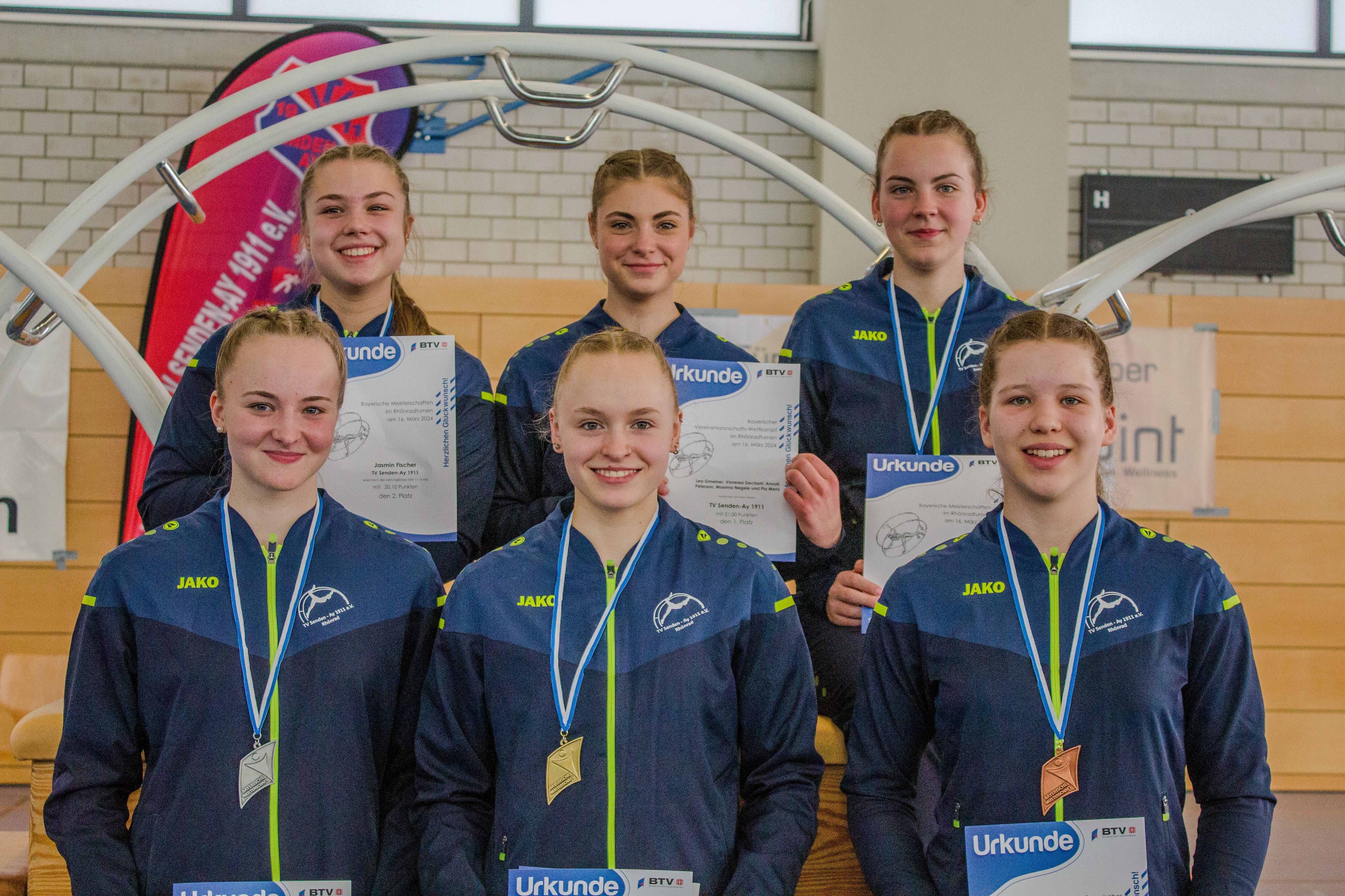 Für den TV Senden-Ay gingen bei den Einzelmeisterschaften die Bayerische Vizemeisterin, Annika Fischer, die Bayerische Drittplatzierte, Nina Rupp, und Alisha Bahcic an den Start. Für die Mannschaftsmeisterschaften gesellten sich noch die Deutsche Schülermeisterin, Lea Gmeiner, und die Deutsche Jugendmeisterin, Leonie Sauter, zum Team.