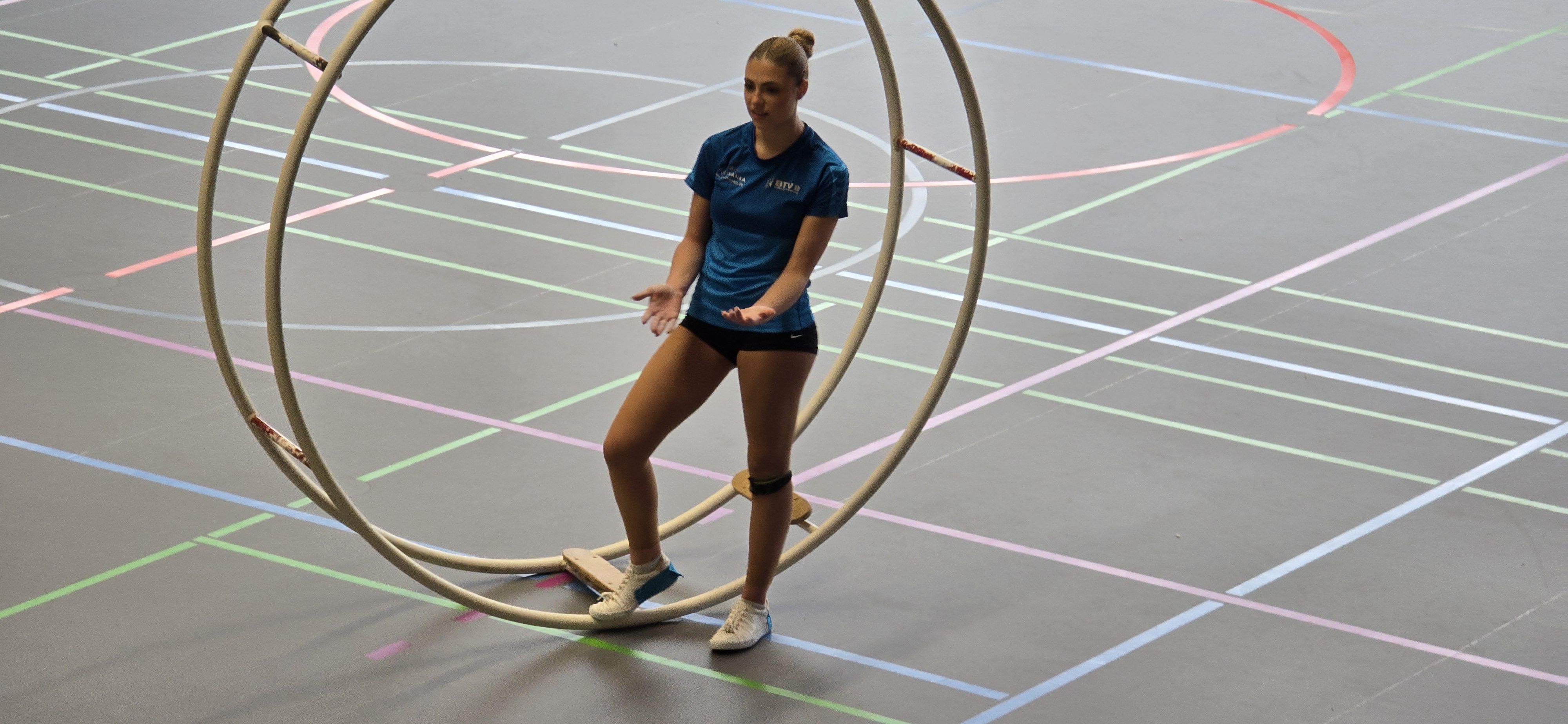 Die mittlere, der 3 Hallen, war für Vorführungen der Tanzmäuse und der Rhönradturner des Turnvereins reserviert. Aber auch hier konnten Interessierte mal selbst in ein Rad steigen oder die Vorführungen aus nächster Nähe betrachten.