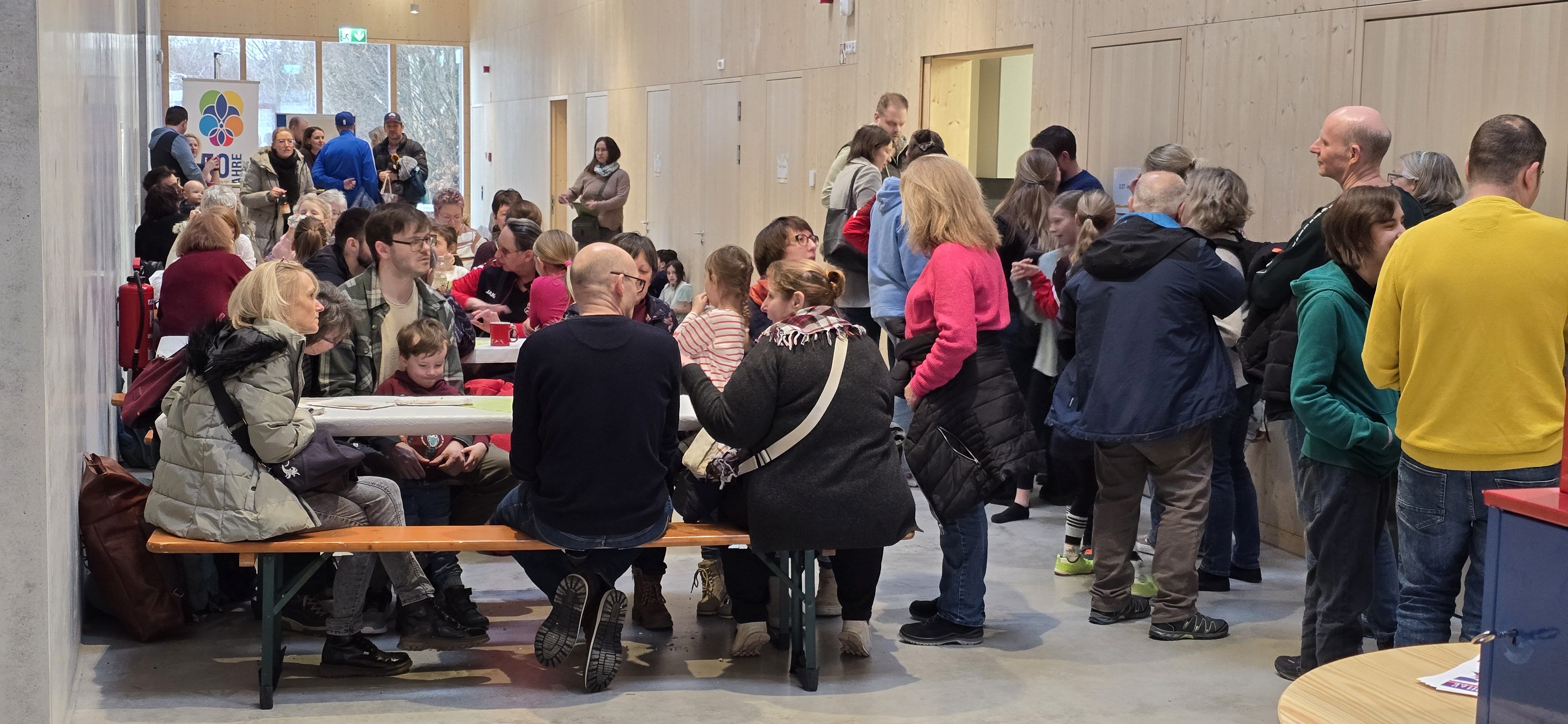 An den aufgestellten Bierbänken und Tischen im Foyer wurden diese zu der einen oder anderen Tasse Kaffee verspeist. Es entwickelten sich mehr oder weniger fachliche Gespräche oder man nutzte die Gelegenheit zu einem gemütlichen Beisammensein, das gegen 16 Uhr dann seinen Ausklang hatte.